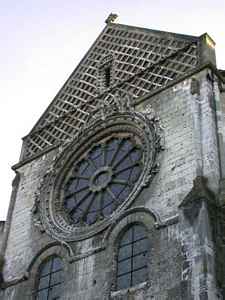 roue de la fortune sur la façade du transept. Au dessus, le pignon