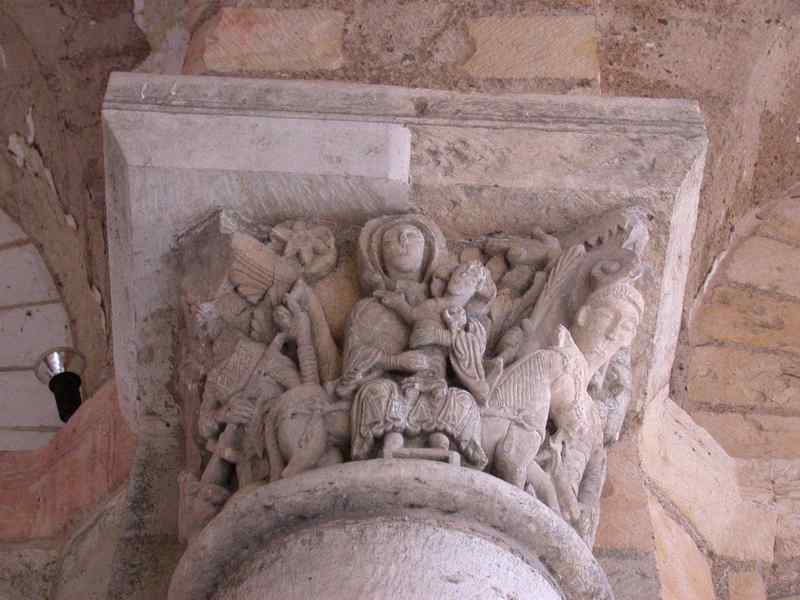 On trouve à ce niveau de nombreux chapiteaux historiés (également présents
