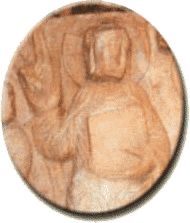 sévère. De sa main gauche, il tient l'Evangile, tandis que