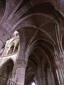Le vaisseau central est bordé par des collatéraux voûtés d'ogives et éclairés par de grandes baies brisées. |