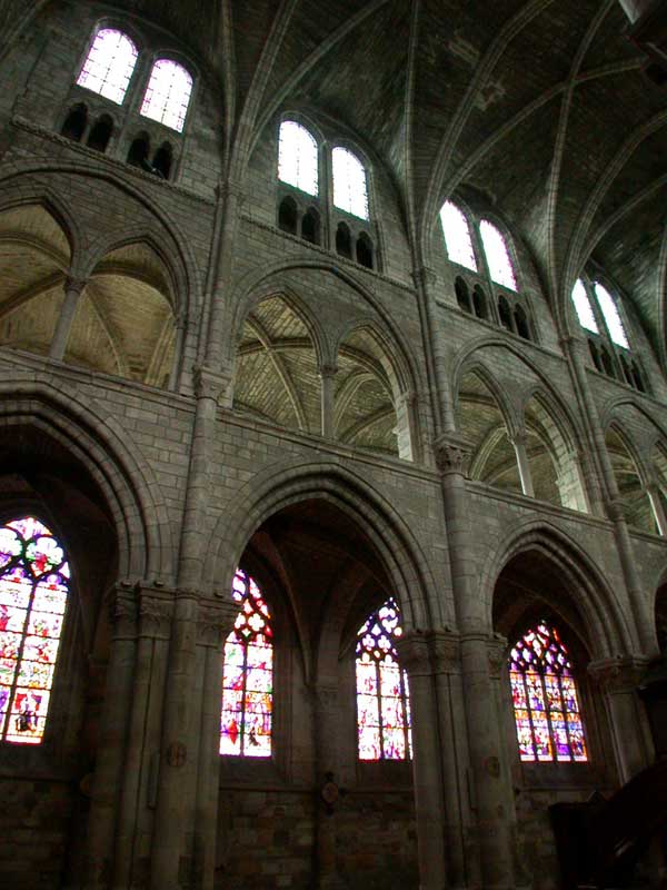 Le chevet présente un bel étagement de baies brisées. Les culées massives des arcs-boutants retombent entre les chapelles rayonnantes. |