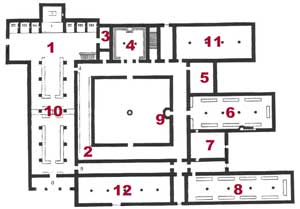 (salle capitulaire, salle des moines/scriptorium, bibliothèque)