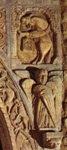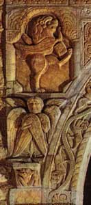 ne trouve que deux chapiteaux historiés : un Christ bénissant