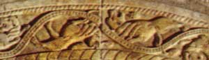 chapiteaux sont taillés dans du marbre rose. Les motifs,