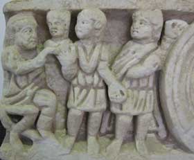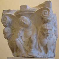 arcade, Daniel tient les lions en respect, assis sur l'un d'entre
