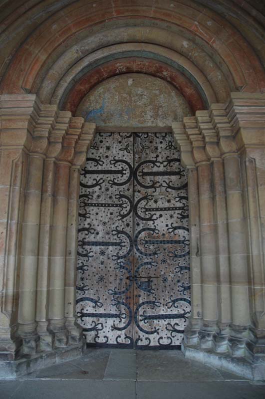 Ce porche abrite le portail roman de l'église qui