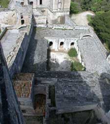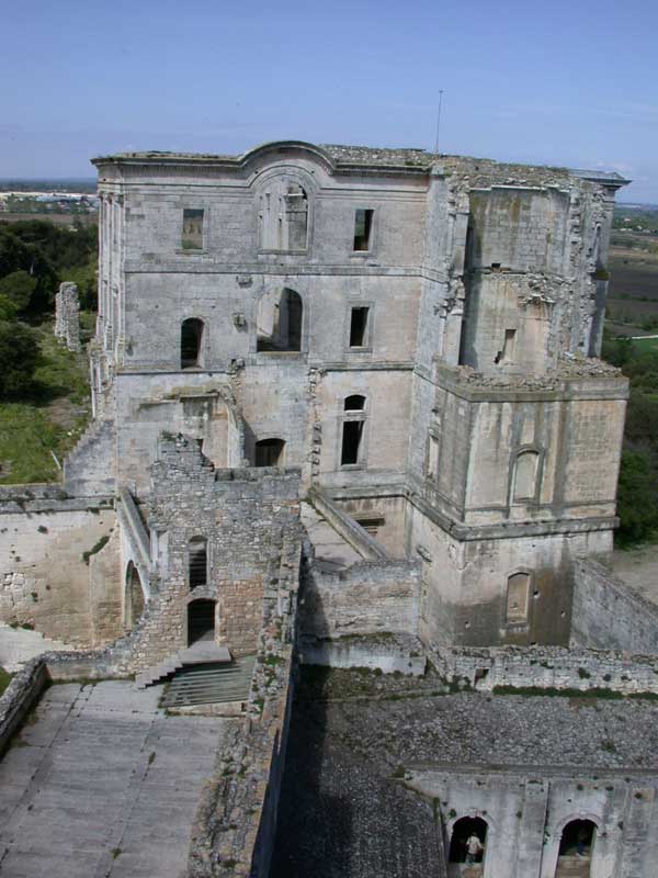 L'ensemble est dominé par une tour de 26 mètres de haut, parfaitement conservée, baptisée tour Pons de l'Orme. Elle surplombe Arles et sa région. |