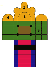 Plan Vert : transept Ocre : chevet ou abside Rouge : nef principale Bleu : nefs latérales ou collatéraux Marron : croisée des transept Noir: travée 1 : chœur 2 : déambulatoire à chapelles rayonnantes 3 : croisillon 4 : absidiole