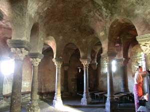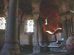 L'évêque Godescalc et Trianus (doyen de la cathédrale) sont à l'initiative de la première construction de la chapelle en 962. Elle s'inspire, de façon plus modeste, du modèle d'Aix-la-Chapelle. Cet édifice primitif a été englobé dans un monument plus vaste du XIIe siècle, dont le plan, très original, suit les contours de la plate-forme qui accueille l'église au sommet du mont. |