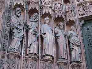 ce auvent, des statues en ronde-bosse représentent Saint