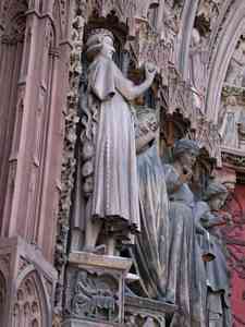 Deux statues encadrent ces portails, celle