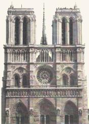 Ce XIIIe siècle débute avec la poursuite des travaux de Notre-Dame de Paris. Commencé en 1163, soit à peine vingt ans après Saint-Denis, sous l'initiative de son évêque Maurice de Sully, elle ne sera achevée dans son gros œuvre qu'en 1245. Ensuite, un siècle de modifications puis une intervention au XIXe siècle lui donneront son aspect d'aujourd'hui. Toutes les parties ne sont donc pas de la même période : le chœur est plus ancien que la façade, datant elle d'environ 1210. A cheval entre la période de naissance du gothique et celle de son affirmation, la cathédrale Notre-Dame porte en elle cette transition architecturale. C'est ainsi qu'à l'intérieur, de gros piliers qui soutiennent la retombée des voûtes rappellent un art roman mourant. La façade, elle, à part la rose centrale, est dominée par une succession verticale d'arcs brisés, ce qui tranche nettement avec la façade de Laon édifiée à peine quelques années plus tôt. Quant aux dimensions de Notre-Dame de Paris, elles dépassent largement celles d'une autre cathédrale du gothique primitif : Noyon : 130 mètres de long, 35 mètres de hauteur sous la voûte. De telles dimensions annoncent celles plus grandes encore des cathédrales à venir.